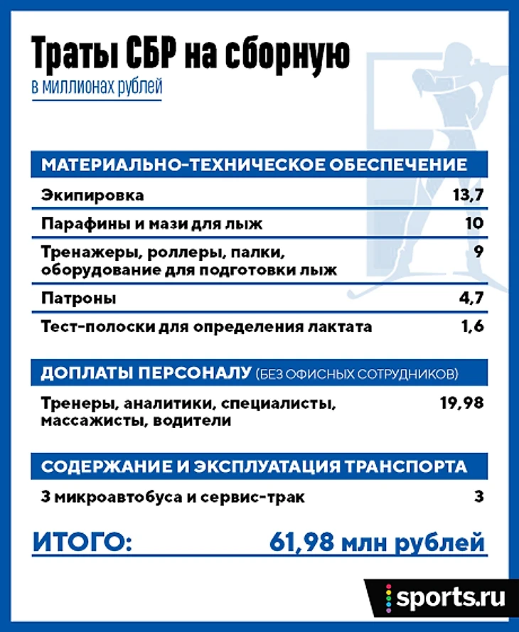 Союз биатлонистов России (СБР) потратил 62 миллиона рублей на сборную в сезоне-2018/19.