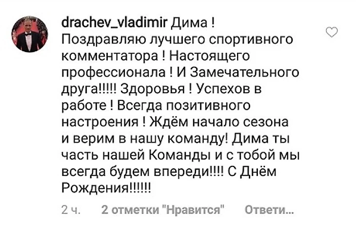 «Дима! Поздравляю лучшего спортивного комментатора! Настоящего профессионала! И замечательного друга!