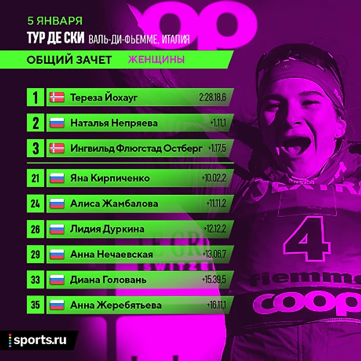 🥈 Йохауг победила в общем зачете «Тур де Ски», Непряева второй год подряд взяла серебро