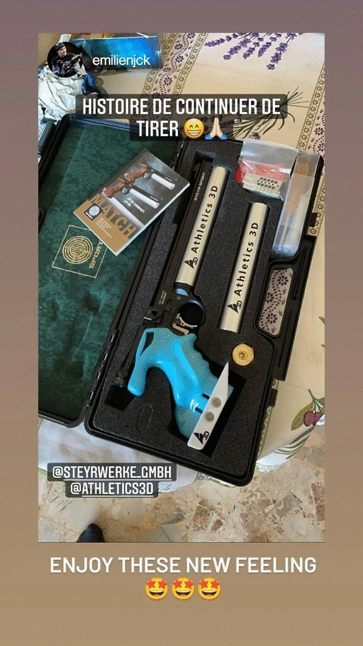 «Поскольку его правая рука всегда свободна, он (Эмильен) подумал, что мог бы использовать ее и найти подход, который дополнит биатлонную стрельбу. Например, стрельба спортивная.