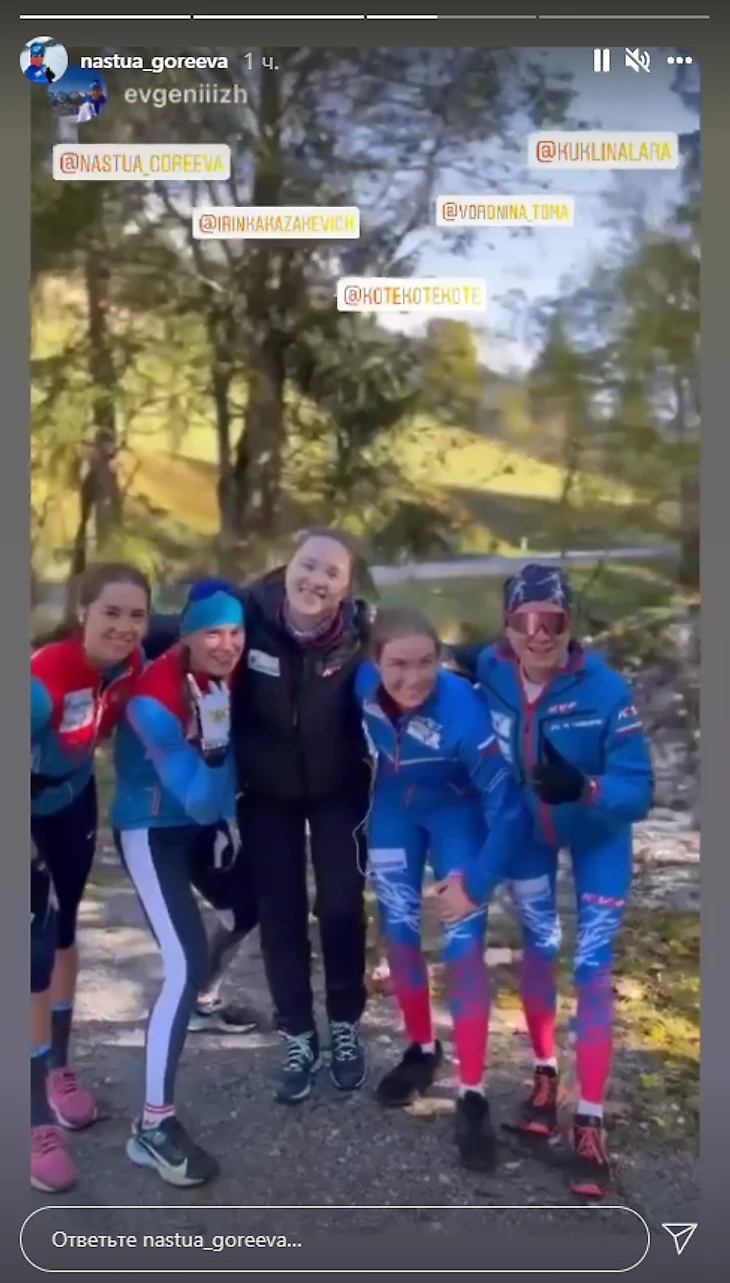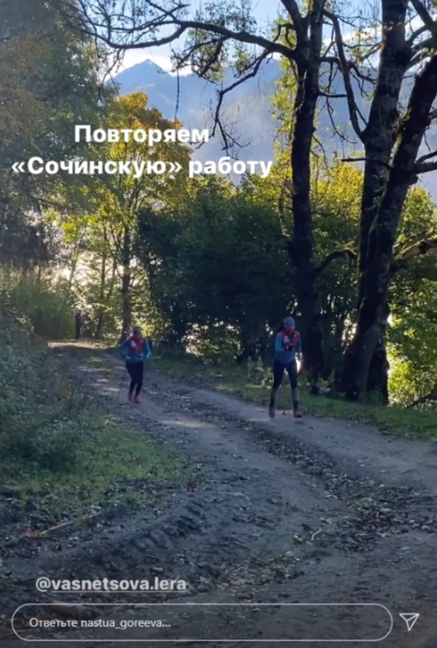 Гореева опубликовала видео в сторис инстаграма, на котором спортсменки из группы Михаила Шашилова пробежали в подъем.