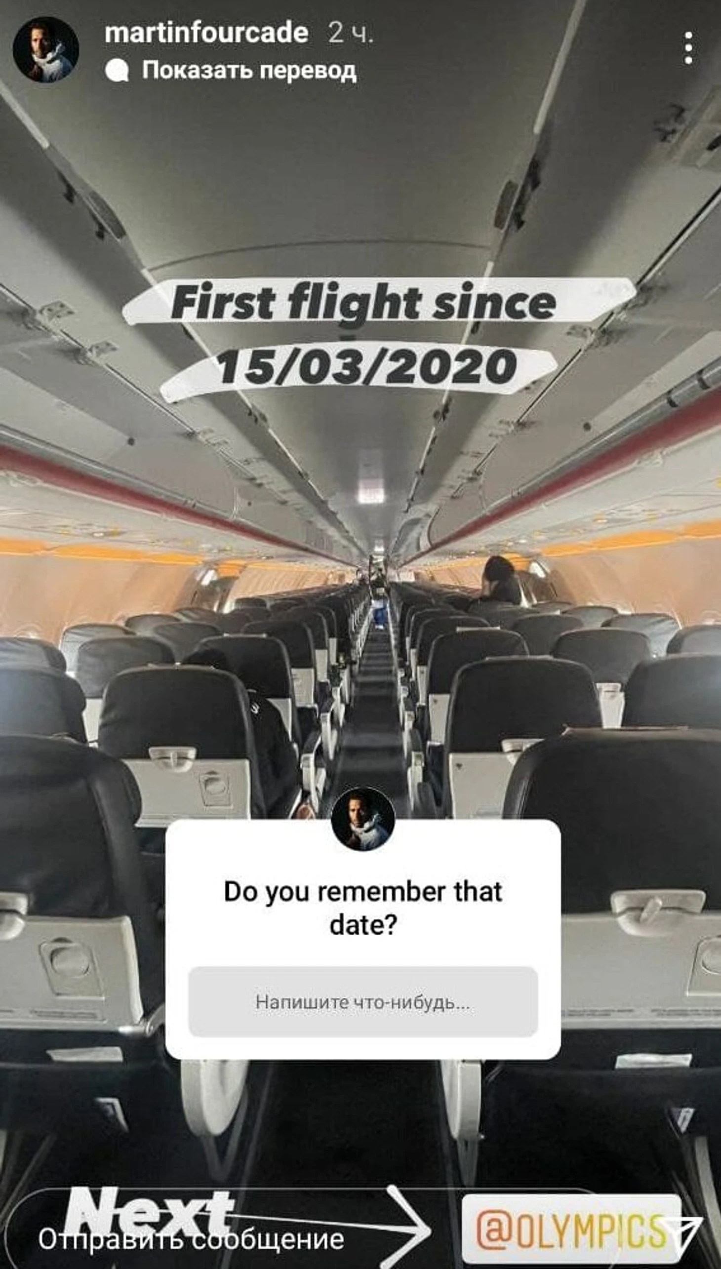 Француз, завершивший спортивную карьеру в 2020 году, опубликовал фото из самолета. Он отметил, что полет станет для него первым за последние два года.