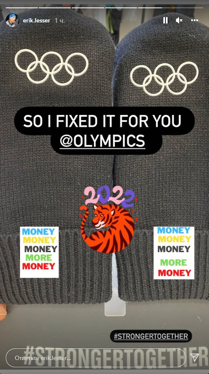 «Мы получили мерч Олимпиады. Так что я усовершенствовал его для вас», – написал Лессер, отметив в публикации официальный аккаунт Олимпийских игр.