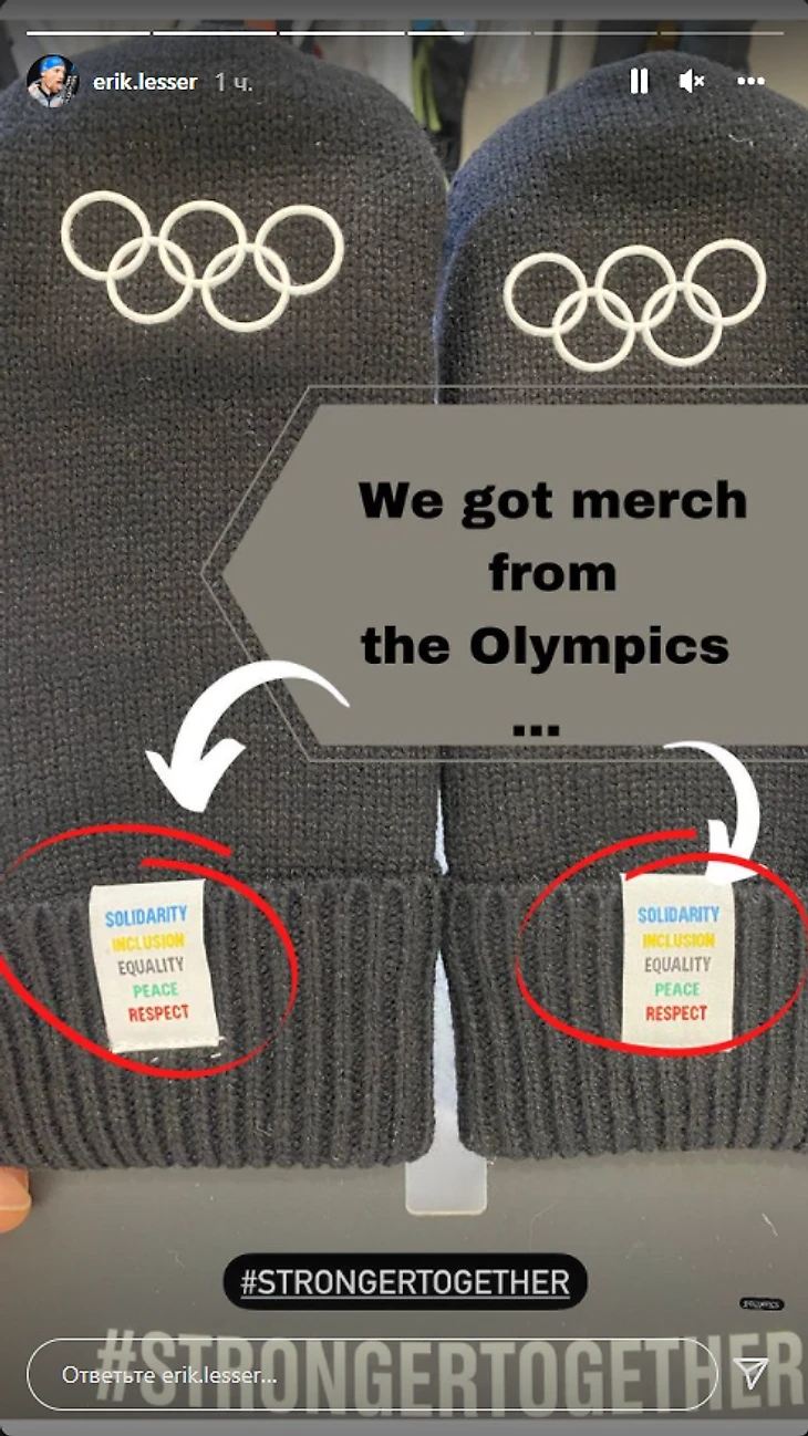 В сторис инстаграма спортсмен опубликовал фото перчаток, на ярлыке которых написано: «Солидарность, инклюзивность, равенство, мир, уважение». Лессер в фоторедакторе заменил эти слова на «деньги, деньги, деньги, еще больше денег».