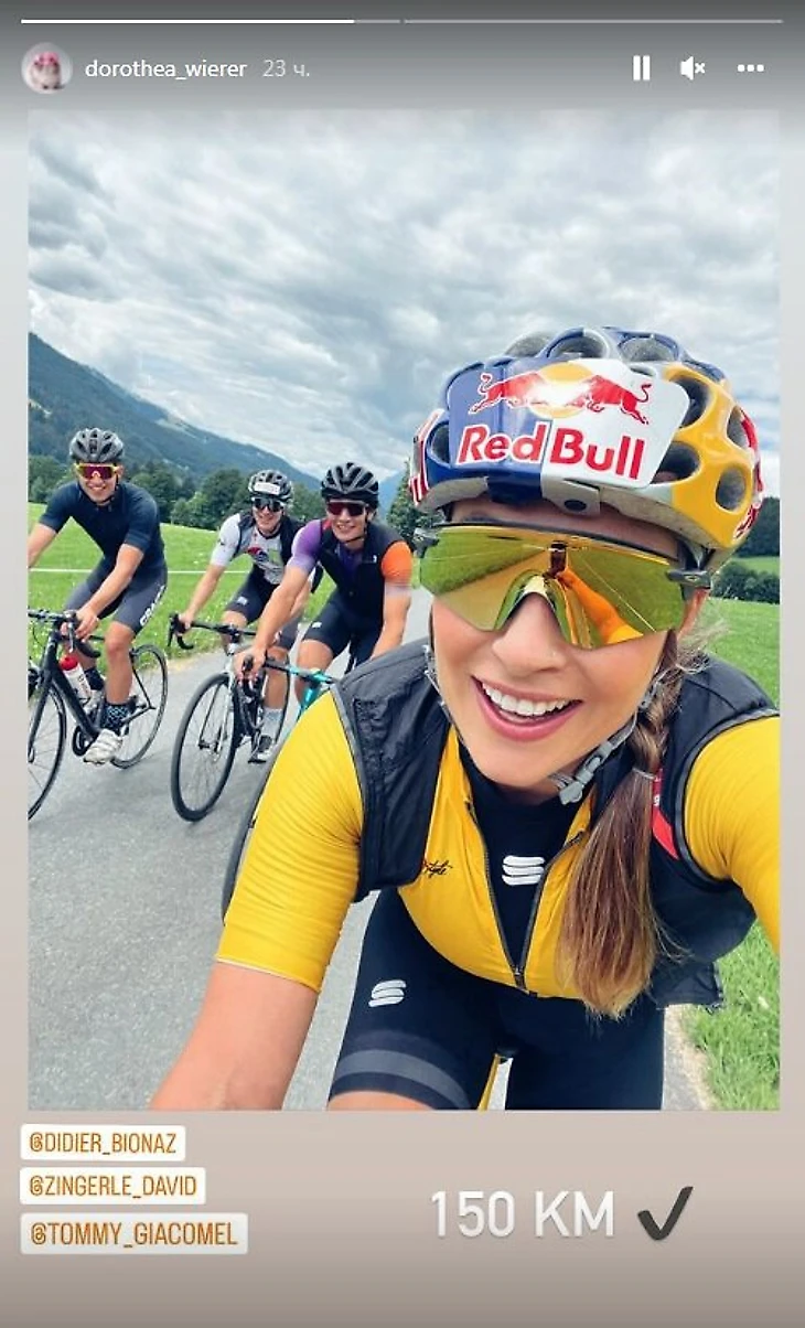 • Доротея Вирер проехала 150 км на велосипеде с партнерами по команде на сборе в Хохфильцене