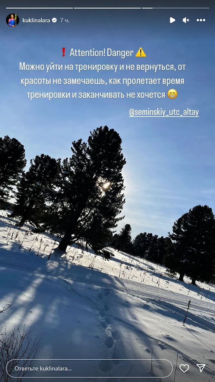 «Можно уйти на тренировку и не вернуться, от красоты не замечаешь, как пролетает время тренировки, и заканчивать не хочется», – позже написала Куклина.