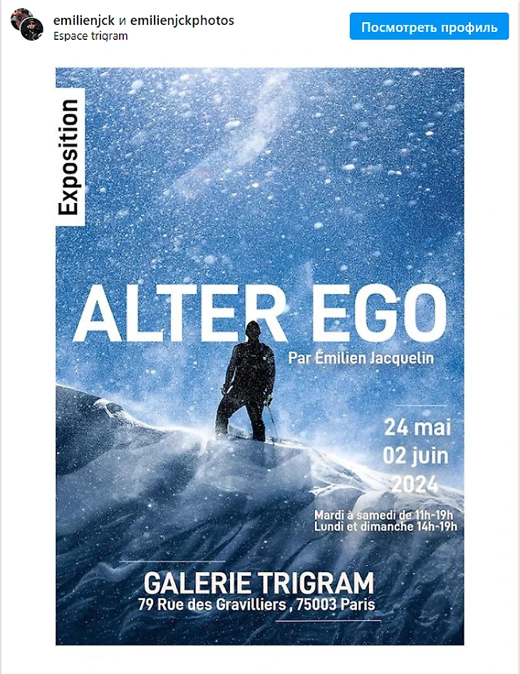 С 24 мая по 2 июня француз представит работу под названием «Альтер эго». Он покажет снимки, сделанные во время тренировок и путешествий в 2022 и 2023 годах.
