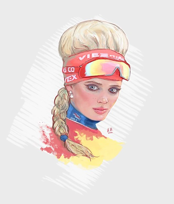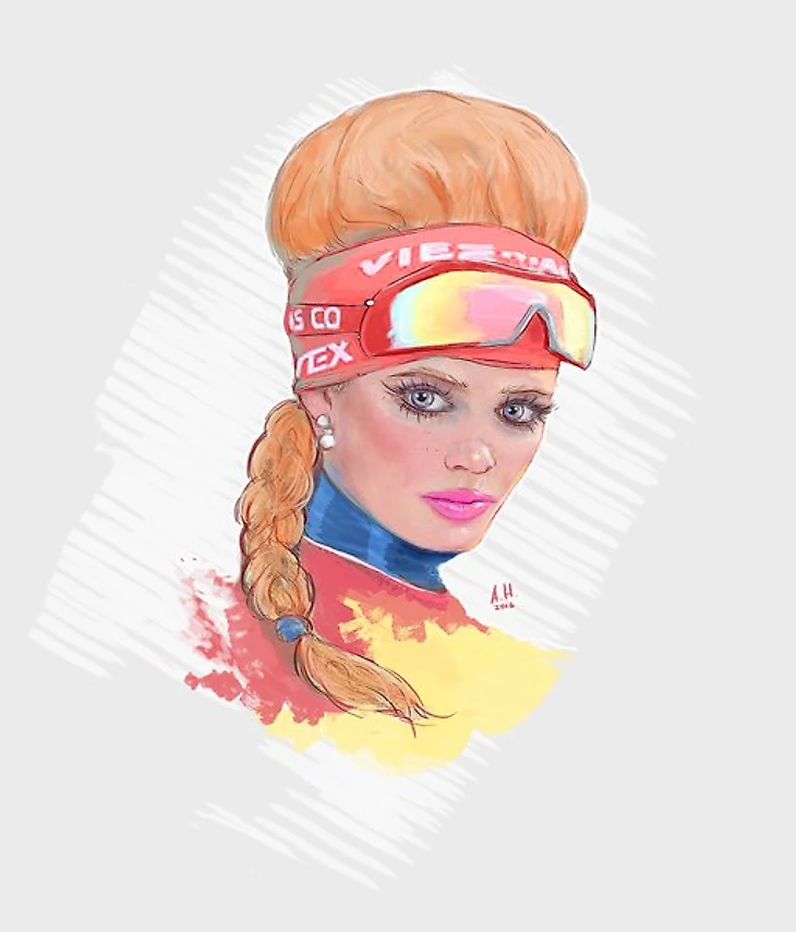 С одной стороны выбор велик даже в рамках биатлона, с другой - те немногие шаржисты, что сюда заглянут, меня поймут - для комфортного шаржа подойдёт не каждое лицо. Чем оно более классическое, с естественными пропорциями, без выраженных индивидуальных особенностей, тем сложнее его сделать и забавным и одновременно узнаваемым. Раздумывая, под стук пальцев по столешнице, выбирая жертву, я положился на правило инь/янь - уравновесить уже нарисованные мужские лица женскими. Трудность заключалась в том, что на женщин шаржи мне не доводилось рисовать ранее. Портреты, да, много, но не шаржи.