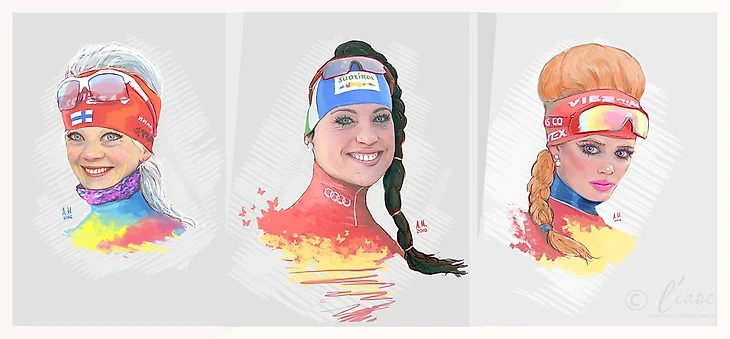 Приветствую вас, хорошие мои (это я про вас, подписчики, в том числе потенциальные), на страницах моего блога. Сегодня я расскажу и покажу шаржи на трёх топовых биатлонисток текущего сезона. После того как я (об этом в прошлых выпусках блога) разобрался с Мартеном, Антоном и Тарье, передо мной возникла диллема - постепенно переходить к празднованию Нового Года или ещё потренировать шаржи. А если потренировать то на ком?