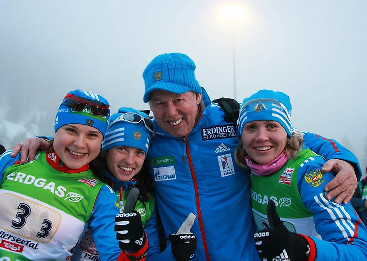 Анна Богалий, Светлана Слепцова и Наталья Сорокина счастливы с Вольфгангом Пихлером.
