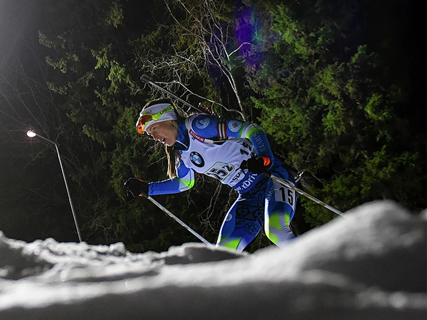 Словачка Анастасия Кузьмина теперь в цветах национального флага – и для биатлонной картинки это шикарно. Узнаваемая, броская, несимметричная раскраска – при этом не хочется поскорее отвести взгляд. Крестики (снежинки?) на голени – вообще топ.