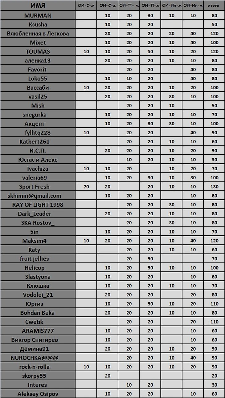 Подводим предварительные итоги прошедших гонок. Прошу проверить, ве ли результаты указаны.