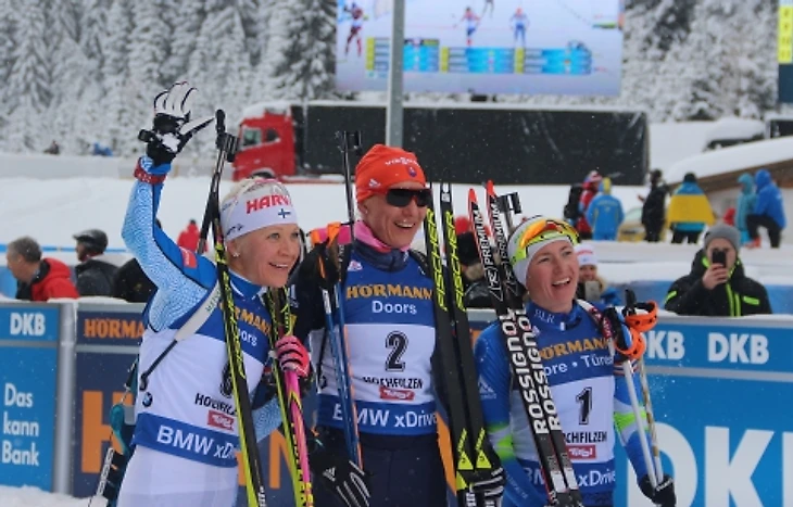 Сегодня бегут молодые, прекрасные женщины. Погодка - не бей лежачего! Даже Кайса замёрзла в своей родной стране. Стояли трескучие морозы. Но сейчас немного потеплело. Львицы большого биатлона: Кайса Мякяряйнен, Анастасия Кузьмина, Дарья Домрачева, Доротея Вирер и немецкая талантливая спортсменка Лаура Дальмайер не собираются уступать первенство на Кубке мира. Пока в общем зачёте на первом месте "финская молния" Кайса Мякяряйнен. Но биатлон всегда показывает нам свой непредсказуемый характер. Биатлон - это вид спорта, полный тайны и подводных, невидимых течений. Биатлон мы любим и тратим на него много эмоций, как отрицательных, так и положительных. Биатлон - это образ жизни не только для спортсменов, но и для нас.
