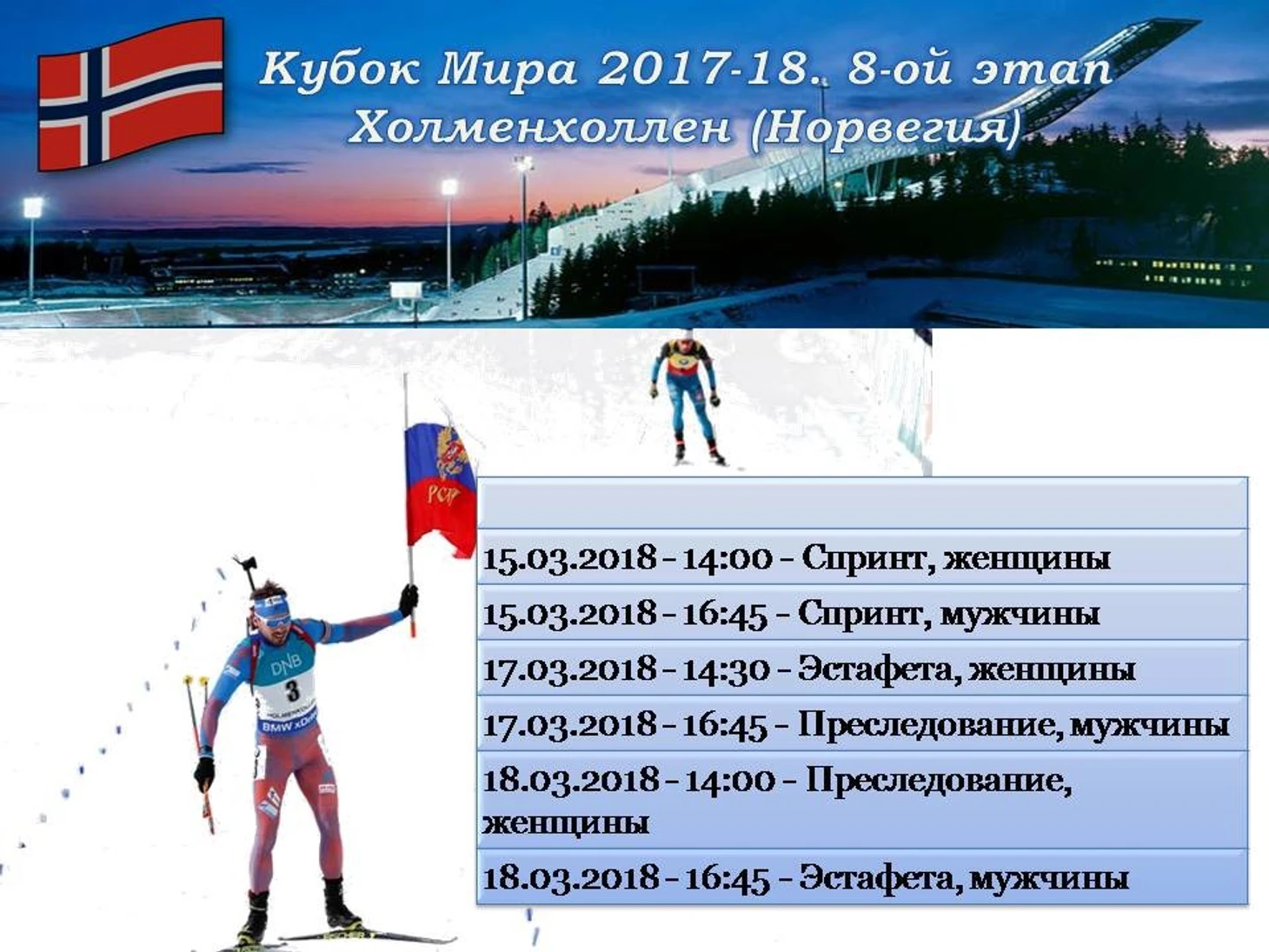 8-й этап. Холменхоллен (Норвегия). 17 марта-Эстафета(женщины), преследование (мужчины)