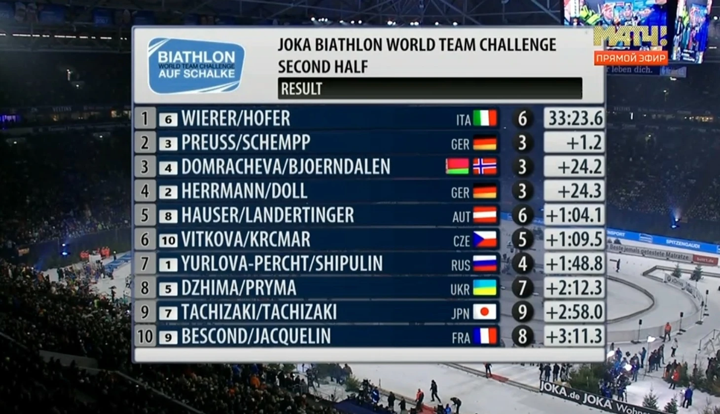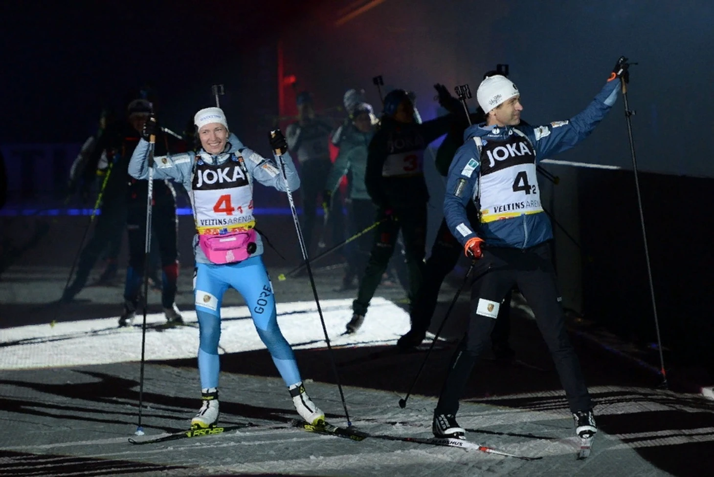 29 декабря 2018 года. Гельзенкирхен (Германия). Biathlon World Team Challenge auf Schalke (биатлонное шоу "Рождественская гонка"). Звездные проводы из большого биатлона Уле Эйнара Бьорндалена и Дарьи Домрачевой.