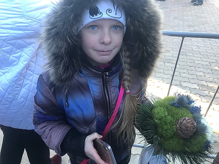Наташа занимается в Красноярске биатлоном, пришла на гонку, стояла у ограждения во время цветочной церемонии, как вдруг победитель гонки Никита Поршнев заметил ее и подарил чемпионский букет. Девочка так обрадовалась, что почти ничего не рассказала о себе. От счастья она обнималась с мамой.