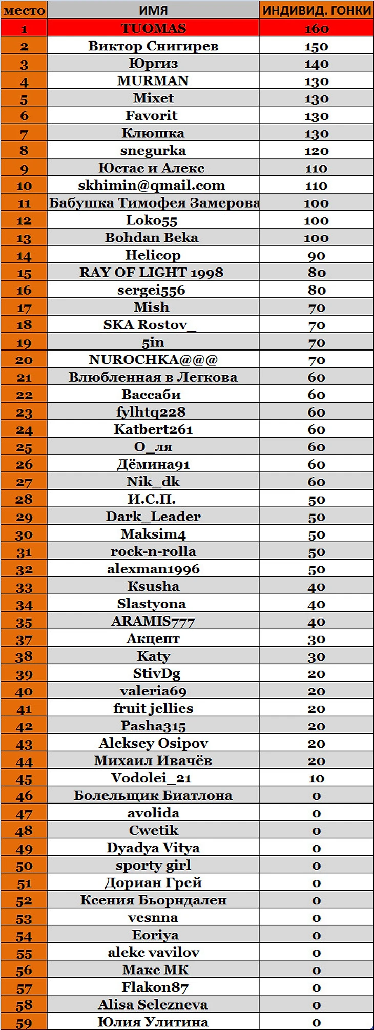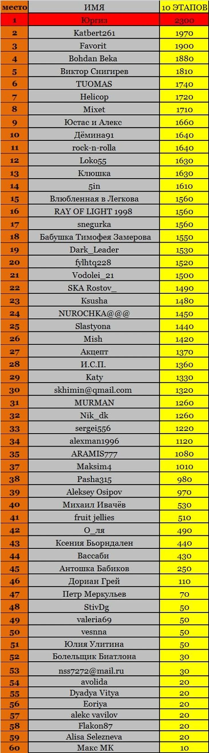 1. Итоги 10 этапа. Победителем Холменколлена становится Юргиз. С промежуточной победой. дальше больше!!!!!