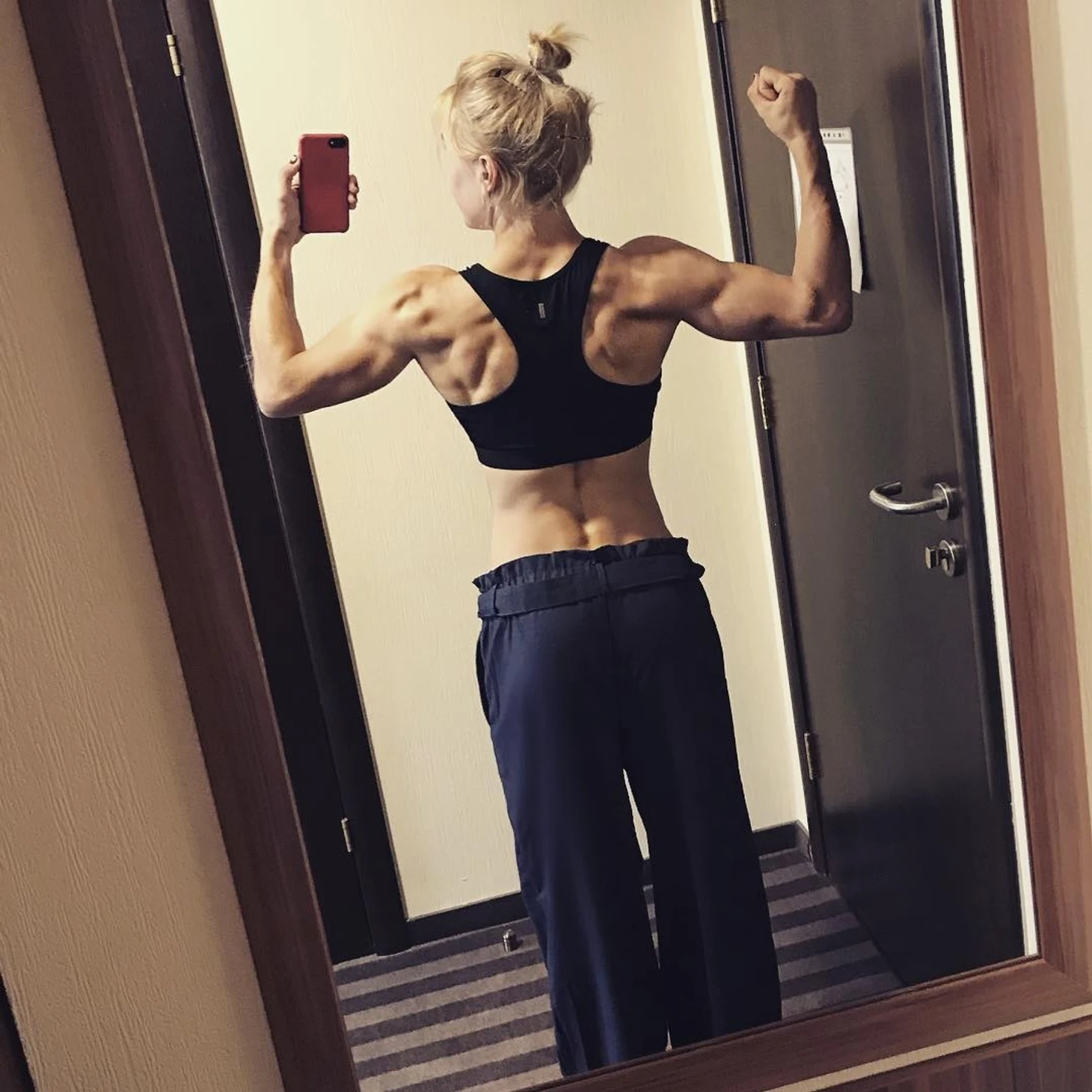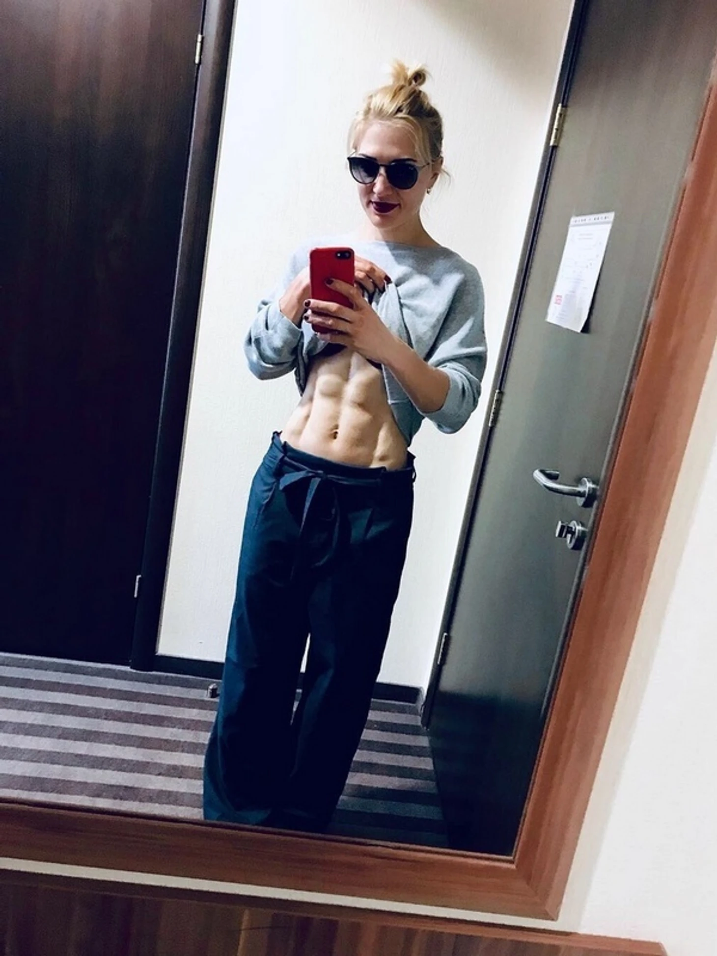 У Павловой тоже порядок с прессом и фигурой, но к зиме вес наверняка вырастет: «Если я добавлю 3-4 кг – буду знать, что это мышцы и мне это нужно. Лишний вес немного бьет по самооценке: была такая, а теперь +3 кг. Но тренеры правы: на чем бегать-то?».