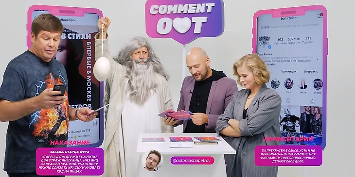 Дмитрий Губерниев пришел на Comment Out – ютуб-шоу, придуманное Александром Гудковым и Владимиром Маркони. Формат простой – звезде нужно или оставить комментарий под чужим постом в инстаграме, или получить наказание. Текст коммента (вместе с будущей жертвой) и наказание вытягивают в начале раунда.