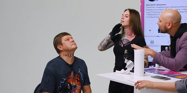 Губерниев повеселился в Comment Out: сделал тату хной (на шее!), бросил в себя стул, позвонил Тинькову