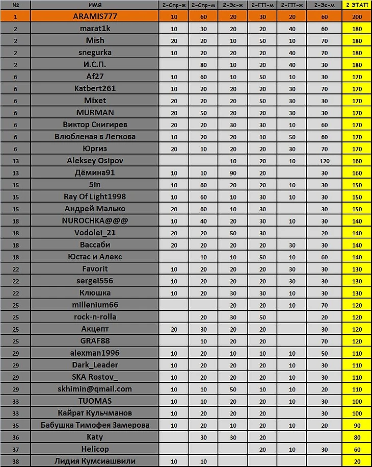 А вот какая ситуация сложилась в общем зачете. Нас ждет плотная борьба впереди, хотя Katbert261 уже отрывается на 40 очков.