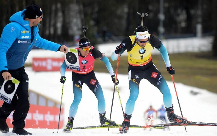Что говорить, если после двух рубежей на ноль две фигуры в желтом и красном бибах мучительно вспахивали снег в дюжине секунд от лидирующей группы, проигрывая десятку спортсменов из разных стран. При том, что буквально два дня назад в спринте Кантен и Мартен показали второе и третье время лыжного хода — не могли же оба разом настолько растерять форму за такое короткое время! Да и у остальных французов дела обстояли далеко не радужно. Эмильен Жаклен справился лучше других и сполна реабилитировался за вчерашний отжиг в эстафете, однако при других обстоятельствах едва ли с чистой стрельбой проиграл бы Йоханнесу с тремя кругами — при всём уважении к норвежскому феномену.