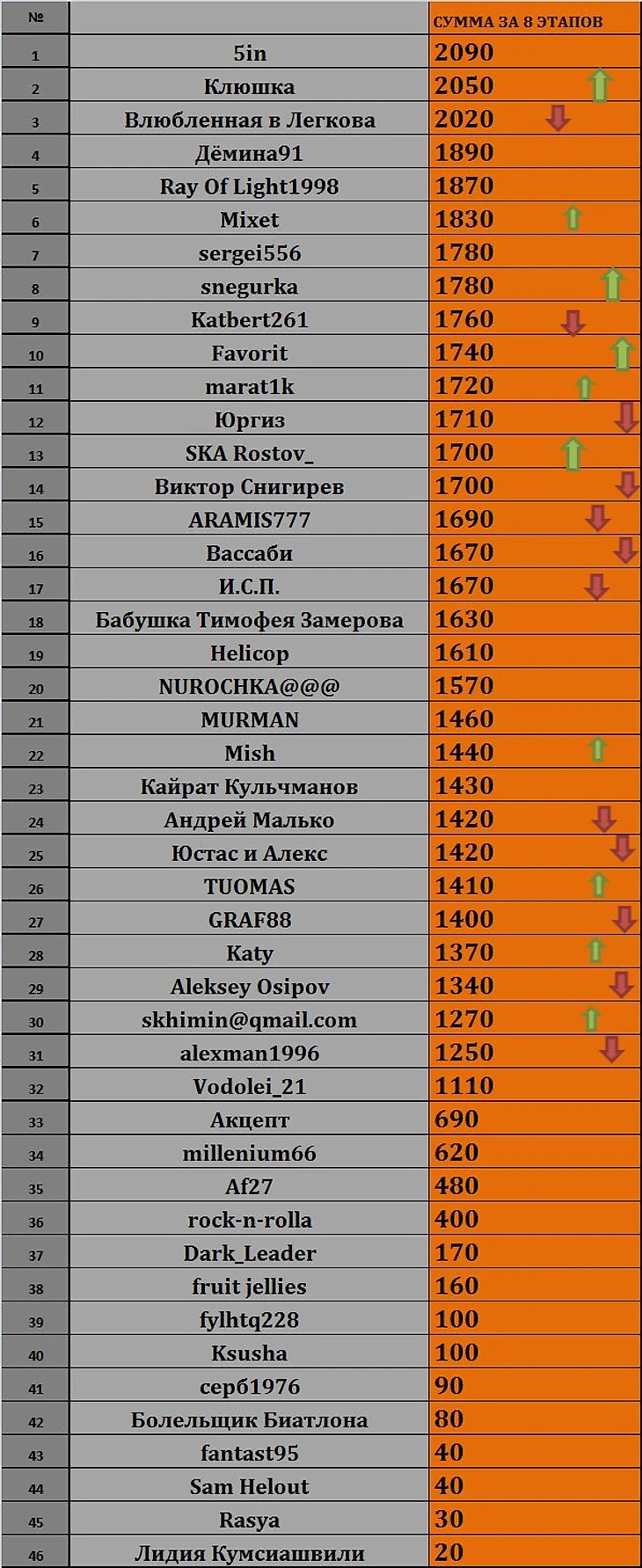 Подводим итоги. Единоличным победителем целого этапа становится marat1k.