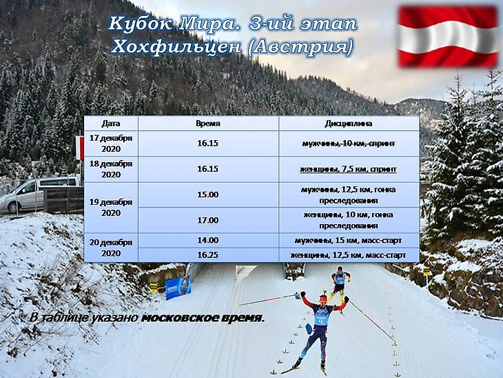 3-ий этап. Хохфильцен (Австрия). Гонки преследования и масс-старты. 19-20 декабря