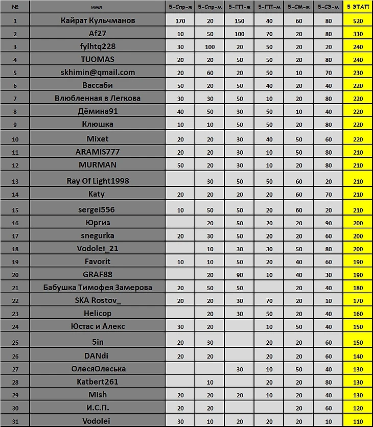 Подведем итоги этапа в Оберхофе. Сначала таблица после 5-го этапа.