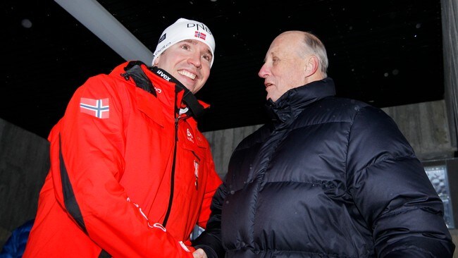 И снова Король Норвегии в окружении немецких спортсменов...совсем пригорюнил.... все-таки своих ждал.....