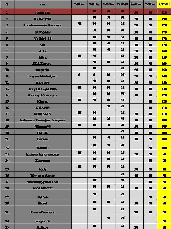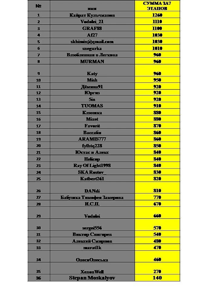 Добрый вечер. Итоги 7-го этапа готовы. Я совсем забыла о том, что не подвела итоги этапа.