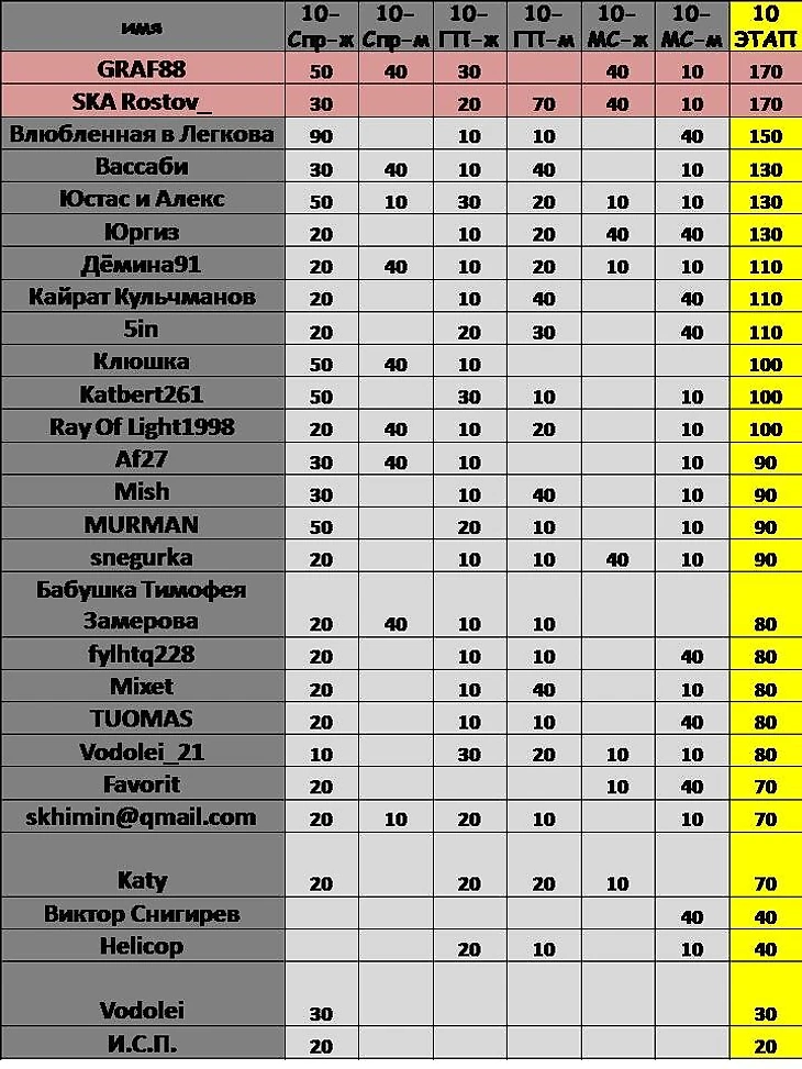 Этот пост посвятим подведению итогов 10го этапа , а итоговый выйдет позже, т.к. возникли небольшие неполадки у меня с файлами. . Прошу проверить прогнозы.