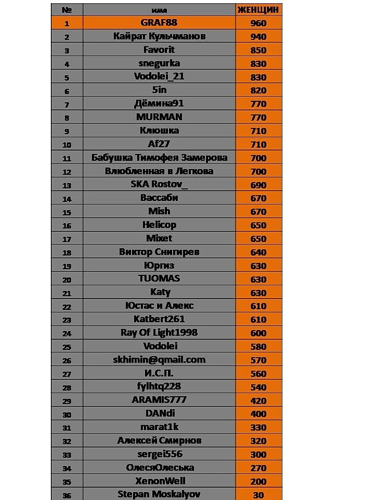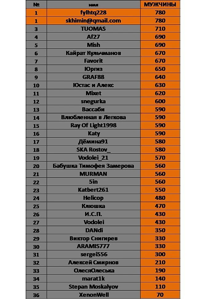 в аналогичной мужской номинации разделили  - fylhtq228 и skhimin@qmail.com