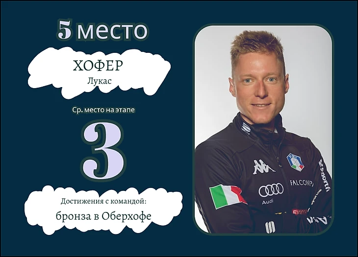 Думаю, 5-я строчка Лукаса Хофера вряд ли кого-то удивила. Итальянец - отличный командный боец, что не раз доказывал на протяжении всей карьеры.