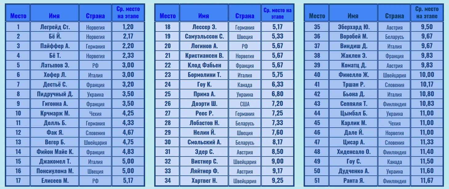 ⚫ Следом идут Себастьян Самуэльссон и Эрик Лессер. Кстати, если бы не эстафета на чемпионате мира, которую немец в пух и прах завалил, Эрик бы разделил третью строчку с Пайффером.