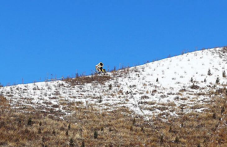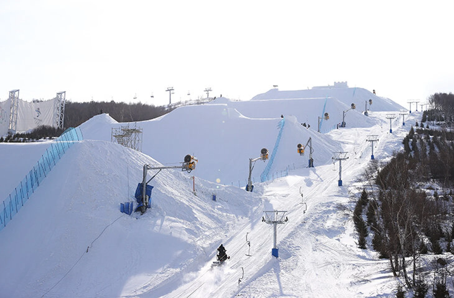 За несколько недель до того, как лучшие лыжники и сноубордисты мира приехали в Чжанцзякоу, дюжина машин неистово производила снег, чтобы покрыть им трассы.