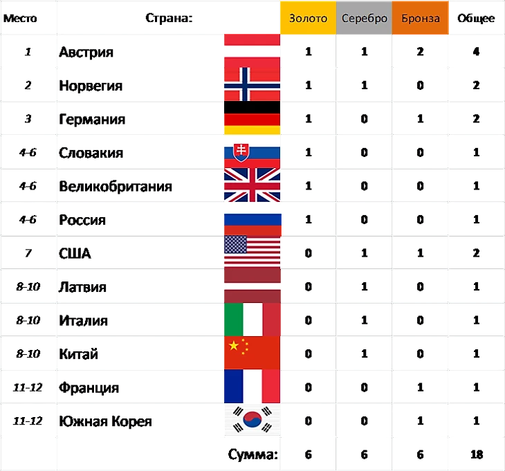 Медальный зачёт: