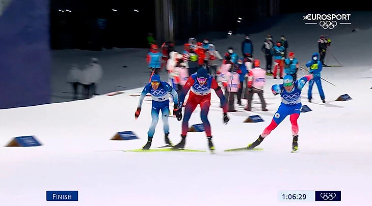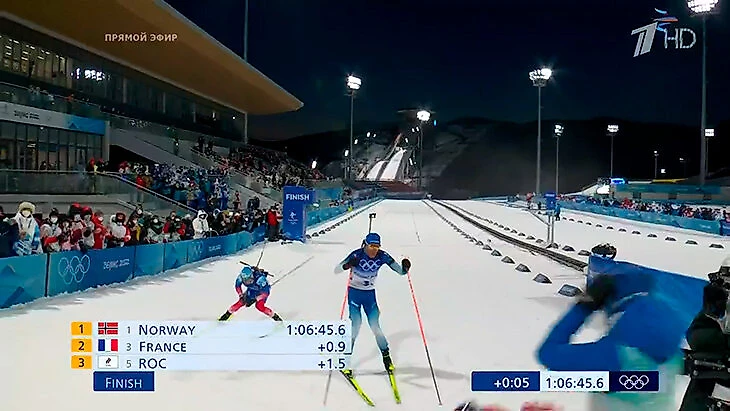 Темп норвежки Ройселанн в целом выдержала, чуть подтянула к медальным строчкам: 26 секунд от третьего места, там Беларусь.