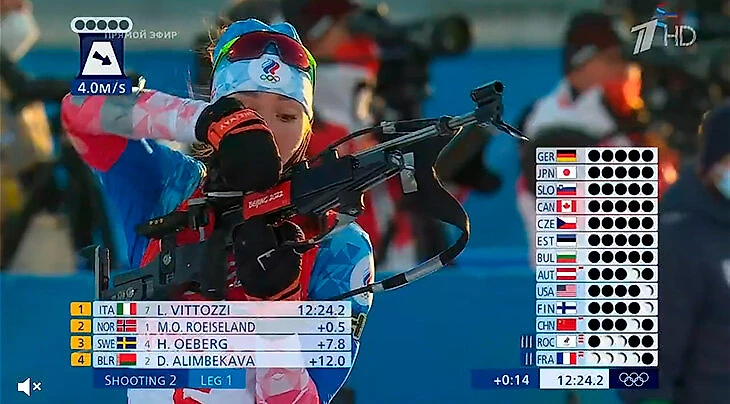 Резцова с одним промахом, она четвертая (+34,4), перед ней в 14 секундах белоруска Сола, прямо рядом – шведка Эльвира Оберг