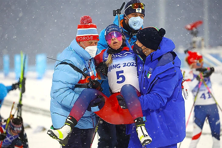 Олимпиада-2022 проходит в горах и сложные условия переносят не все. В биатлонной гонке преследования норвежка Ингрид Тандревольд не справилась с высотой (1600 м) – с финиша ее уносили на руках.