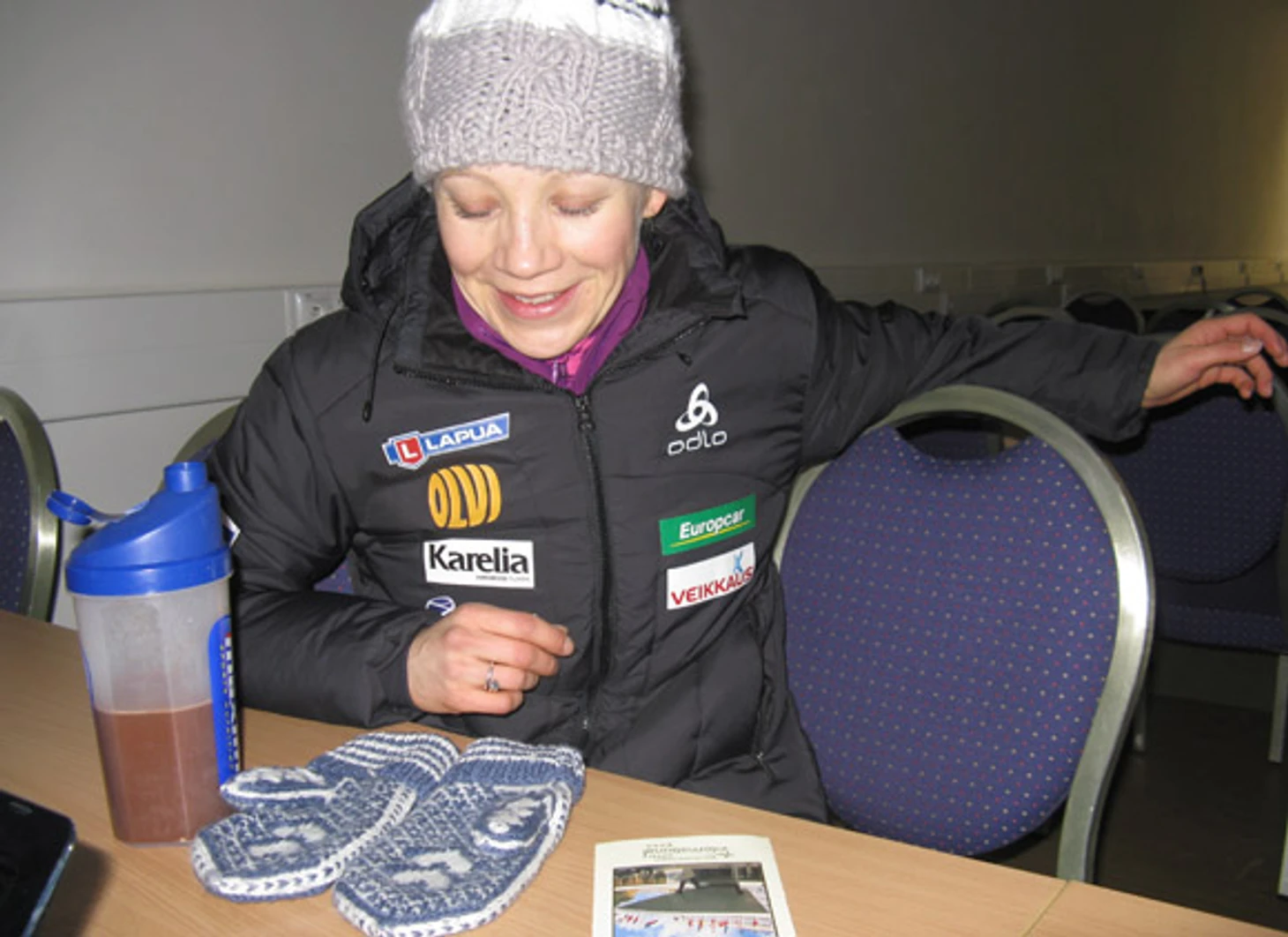 У российской прессы она нарасхват. Кайсу тянут во все стороны: на съемки, интервью, даже просто сфотографироваться. Ее поздравляют с днем рождения. От Дмитрия Губерниева – цветы, от «Советского спорта» – презент-шутка в виде бутылки водки Finlandia, от Sports.ru – шарф СБР с надписью «Биатлон. Made in Russia». Финка смущается, садится в уголке столовой пресс-центра и, постоянно теребя в руках бело-голубые варежки, взахлеб рассказывает о себе.