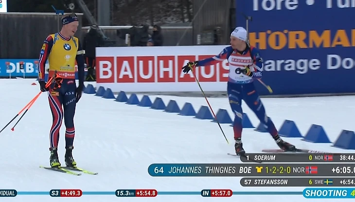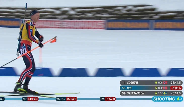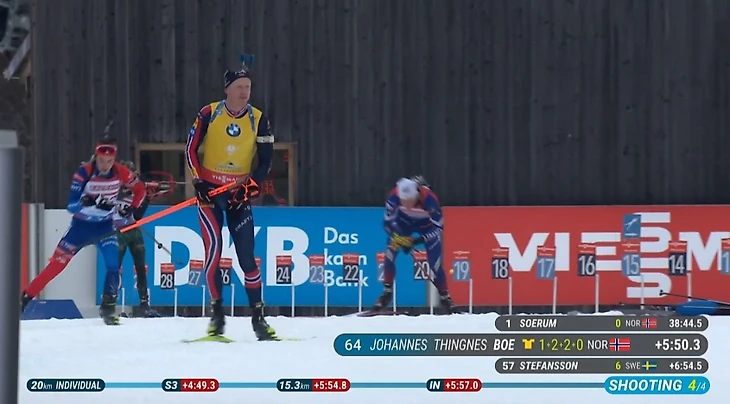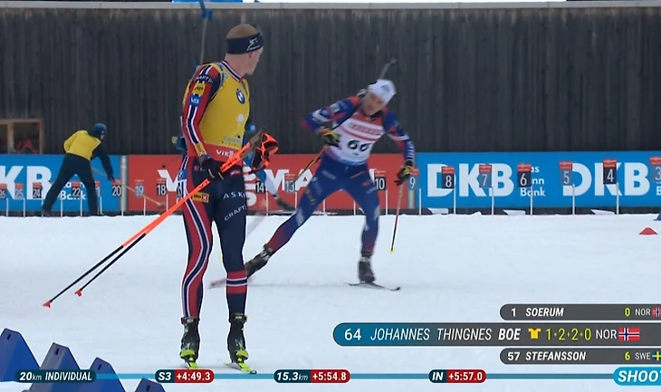 Но в этот раз совсем не задалось: на первых трех рубежах Йоханнес промахнулся 5 раз, а дальше бросил бежать. На круге перед заключительной стрельбой показал лишь 90-е время, отстав на 1 минуту 22 секунды.