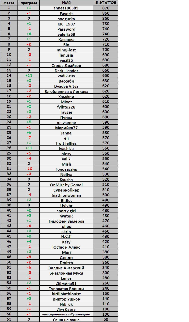 Favorit не смог удержать первое место, и его обошла annet180385, прогнозирующая гонки более стабильно.
