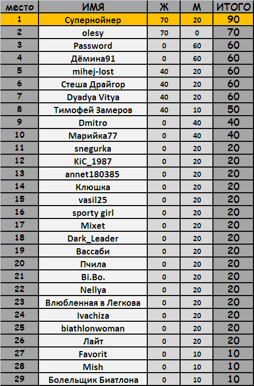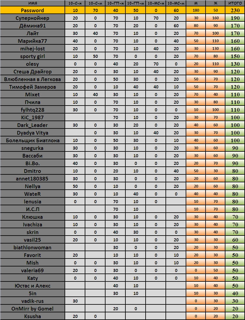 Последним этапом у нас правил Password, ставший лучшим по мужским прогнозам. По женским лучшим становится победитель масс стартов - Супернойнер!