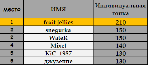 В зачете индивидуальный гонок побеждает... fruit jellies!
