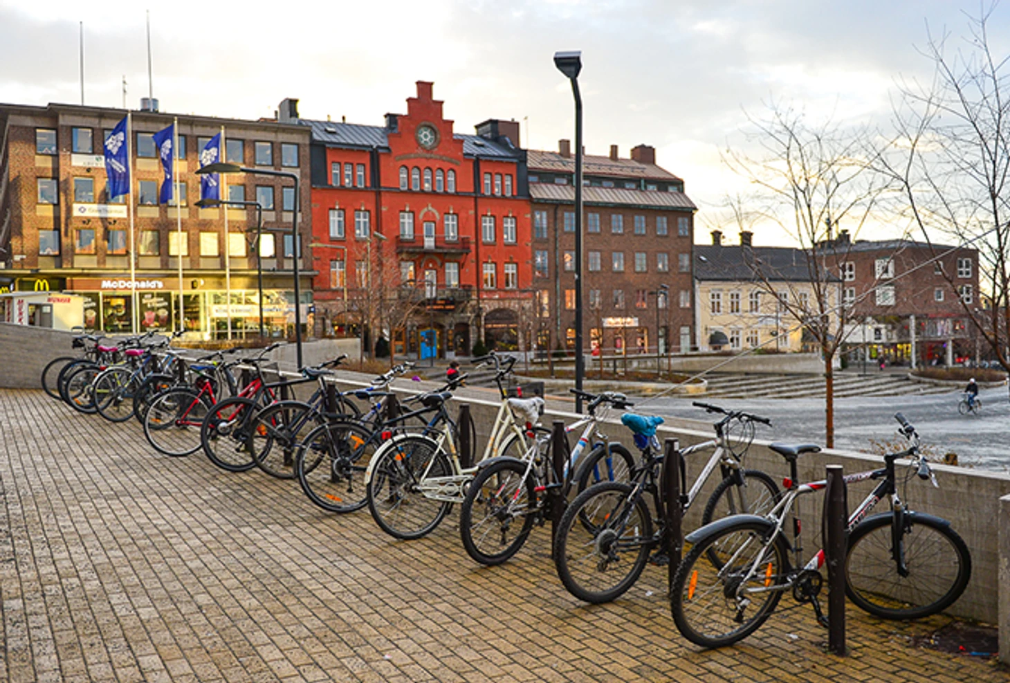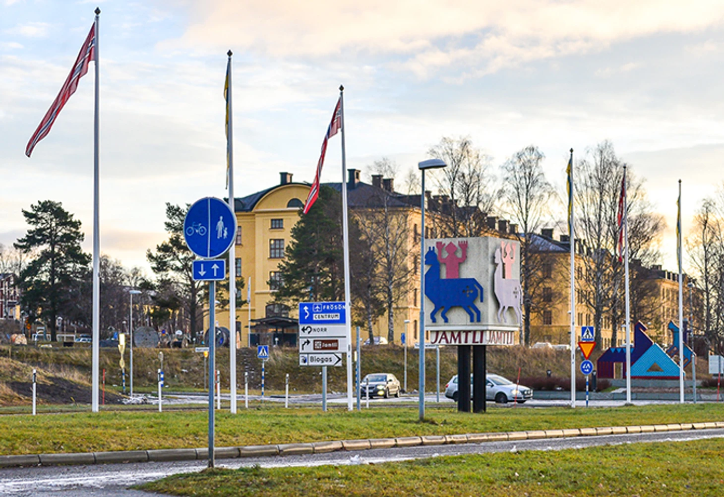 Декабрь, но на велосипедной стоянке нет мест. Известная ярмарка «Ямтли» откроется в пятницу. Прилавки пока пусты, все закрыто. Солнце в Эстерсунде весеннее. Рекламы биатлона в городе почти нет – только указатели около стадиона. Все по-домашнему.
