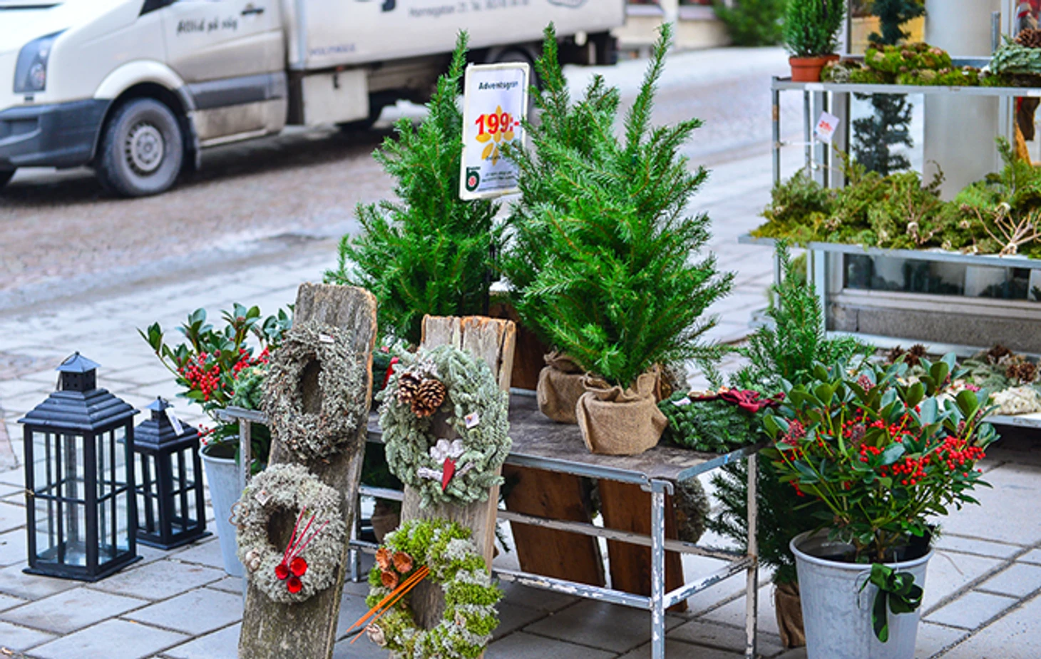 Снег в Эстерсунде растаял. Снежинки остались только на витринах. Но город готовится к Рождеству. Живые ели на центральной площади, у Ратуши. Туристов мало, по сравнению с предыдущими годами. Кризис – обычно русские приезжают охотно, семьями...