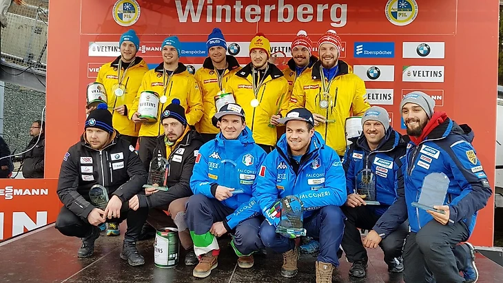 Двойки: 1) Тони Эггерт / Саша Бенекен, 2) Тобиас Вендль / Тобиас Арльт, 3) Робин Гёке / Давид Гамм (все — Германия)…5) Андрис Шиц / Юрис Шиц (Латвия), 6) Александр Денисьев / Владислав Антонов (Россия), 7) Оскар Гудрамович / Петерис Калниньш (Латвия)…12) Андрей Богданов / Андрей Медведев (Россия).