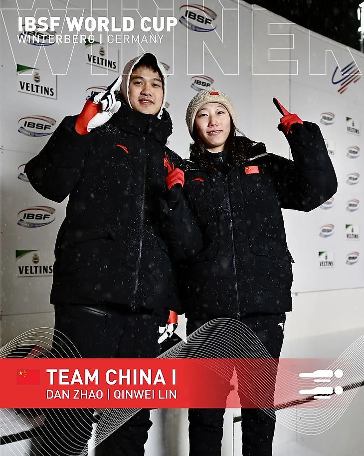 В командной смешанной гонке триумфаторами стали китайцы. Золото забрали Дань Чжао и Куинвэй Лин (2:00.87), а бронзу Юси Ли и Чжэн Инь (2:01.28). Серебрянные медали достались автрийской паре Жанин Флок и Самуэлю Майеру (2:00.97). Австрийскому дуэту не хватило всего одной десятой до победы, однако они единственные уезжают из Винтенберга с двумя медалями.