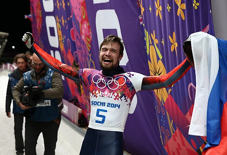 Фото: Никита Трегубов после своего выступления на Олимпийских играх в Сочи.